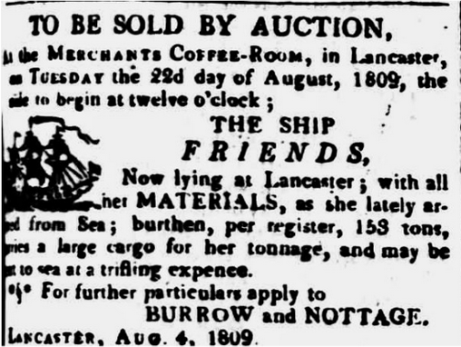 The partnership was founded in 1807, and it owned sugar plantations in the West Indies, as well as engaged in sugar trading. One of the boats they owned was the ‘George Burrow’, which was tragically wrecked in the Lune estuary in 1833. After the business partnership dissolved, George was imprisoned for debt in bankruptcy.
