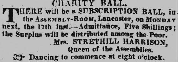 Charity Ball Lancaster Gazette Feb 1817: Courtesy Guardian Newspapers
