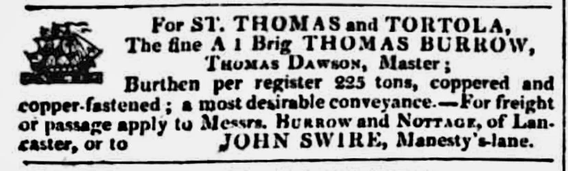 He was the captain of Thetis, a West Indiaman sailing from Lancaster. This notice follows (probably) his final voyage.
