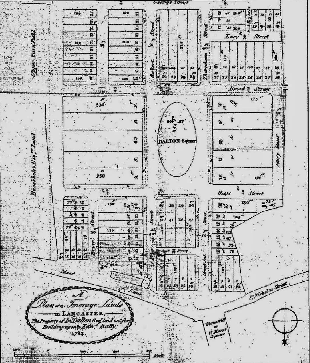 John Dalton’s original plan for the roads and building plots, 1783. (Source: White A (2003) Lancaster: a History).