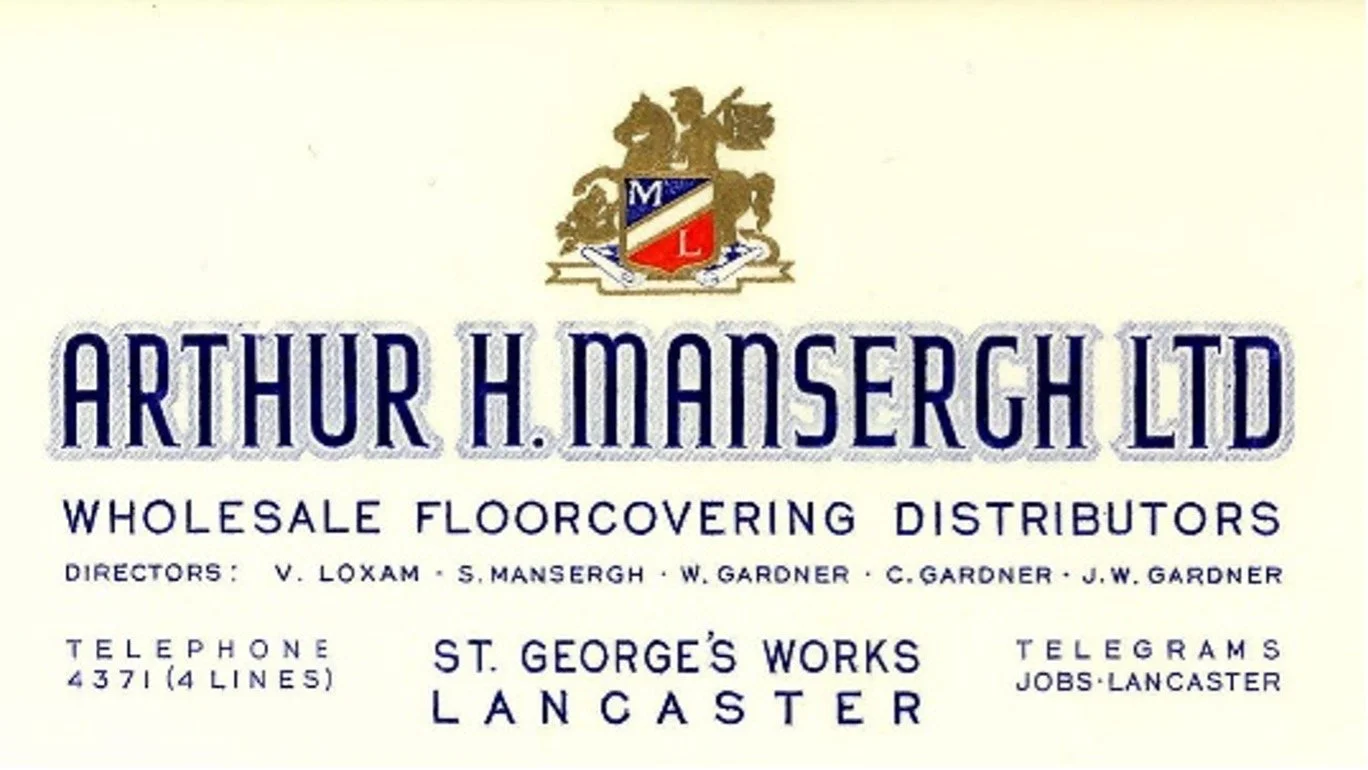 Thomas Newall Ltd was a wholesaler of floor coverings. Around 1931, Robert also served as Company Secretary at Arthur H. Mansergh & Son Ltd, working with his brother Wilton, the Managing Director. The two firms merged in January 1954 and moved to St. George’s Works. After Robert and Wilton died in the late 1950s, Cyril Gardner, Robert’s son, became Managing Director. He had been a Director since 1954.