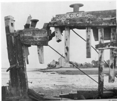 Remains of the old barge c1950 with view to the Anchorage: Collection of the Gardner family