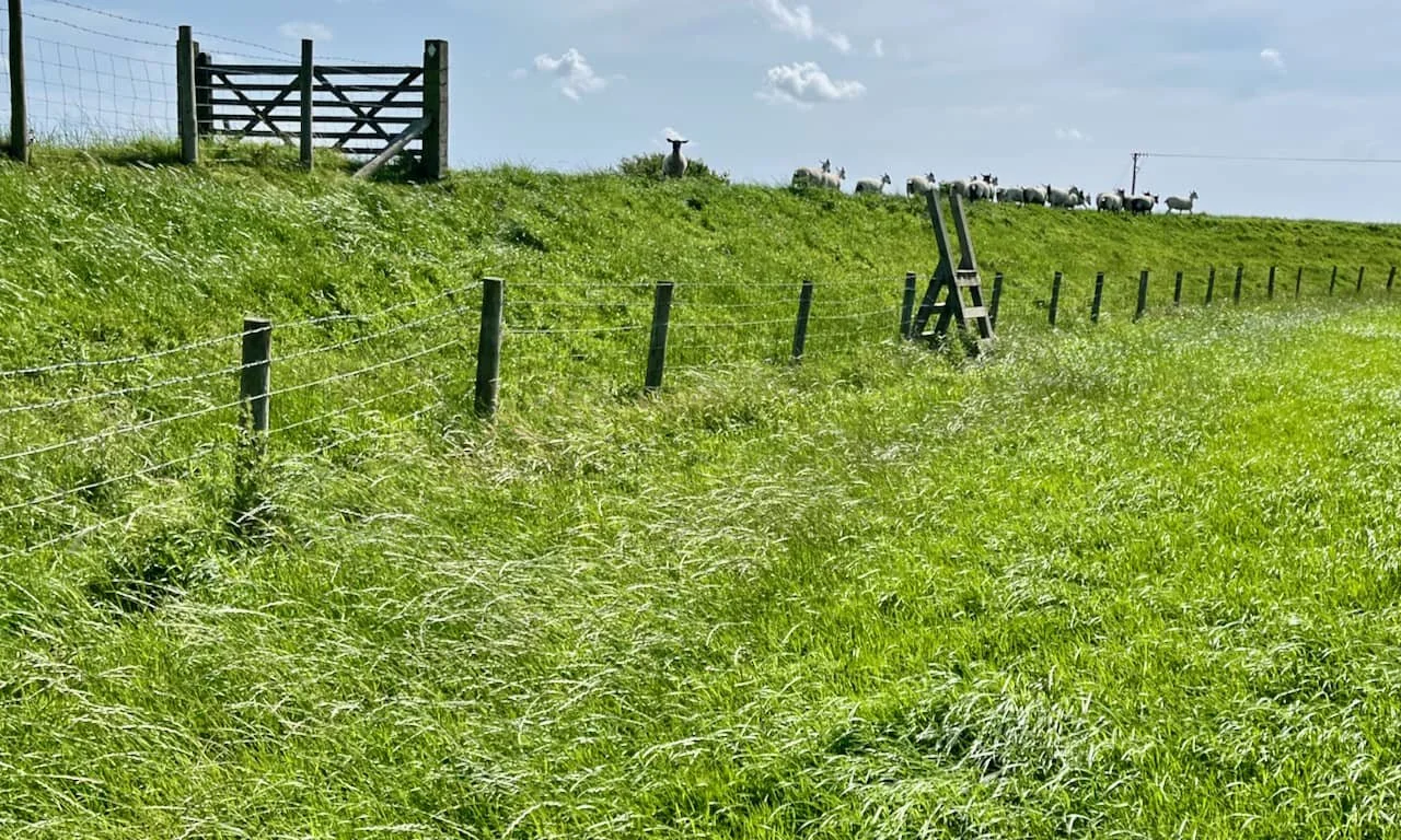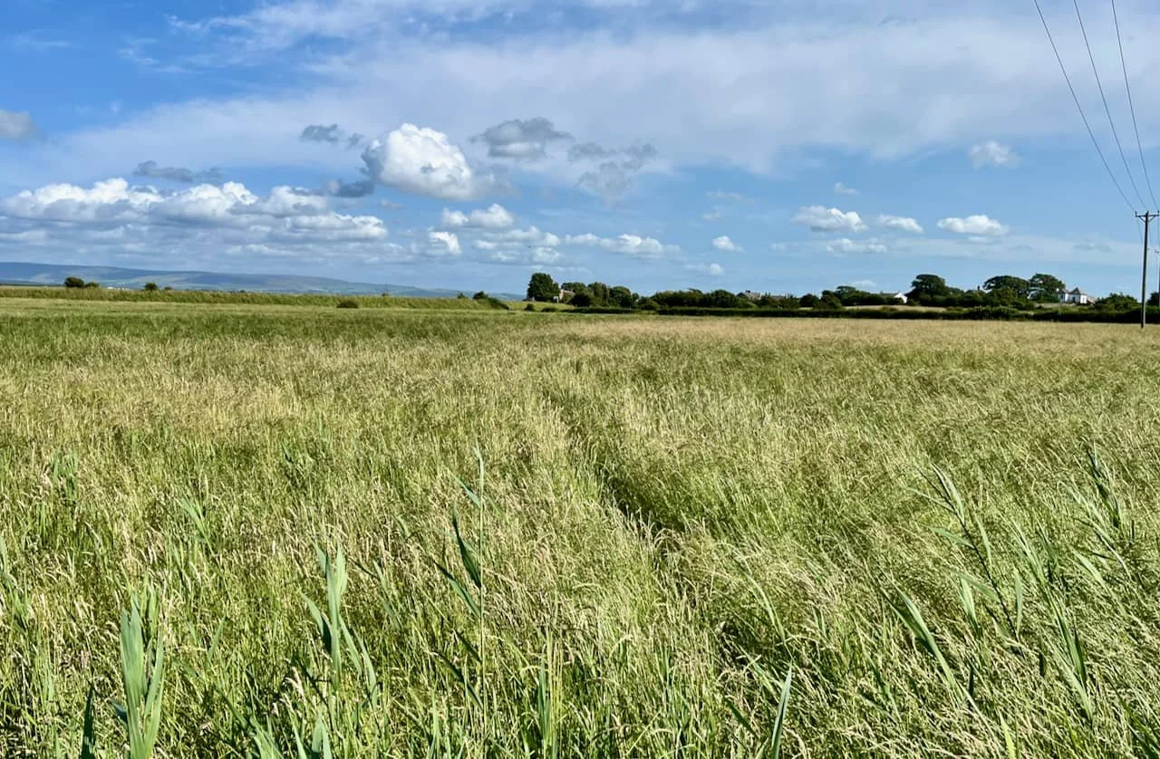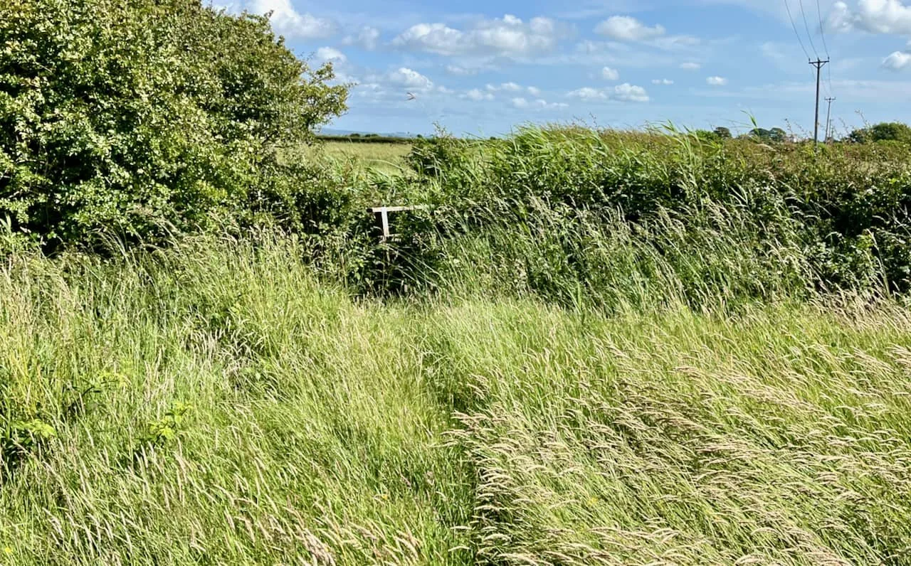 THE LAST LEG: (Number 7) Almost at the Point. Now the route runs diagonally across the field. The Summer House at the top of the Lane is visible top right. There’s a short line of hedge rising up the side of the sea wall – head in that direction.