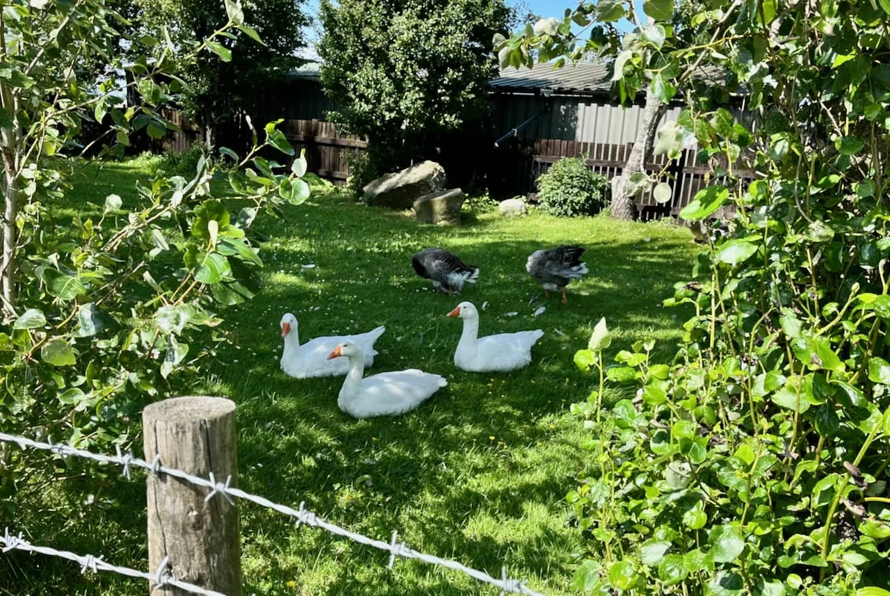 THERE’S A GOOSE LOOSE: The geese in the garden on the right