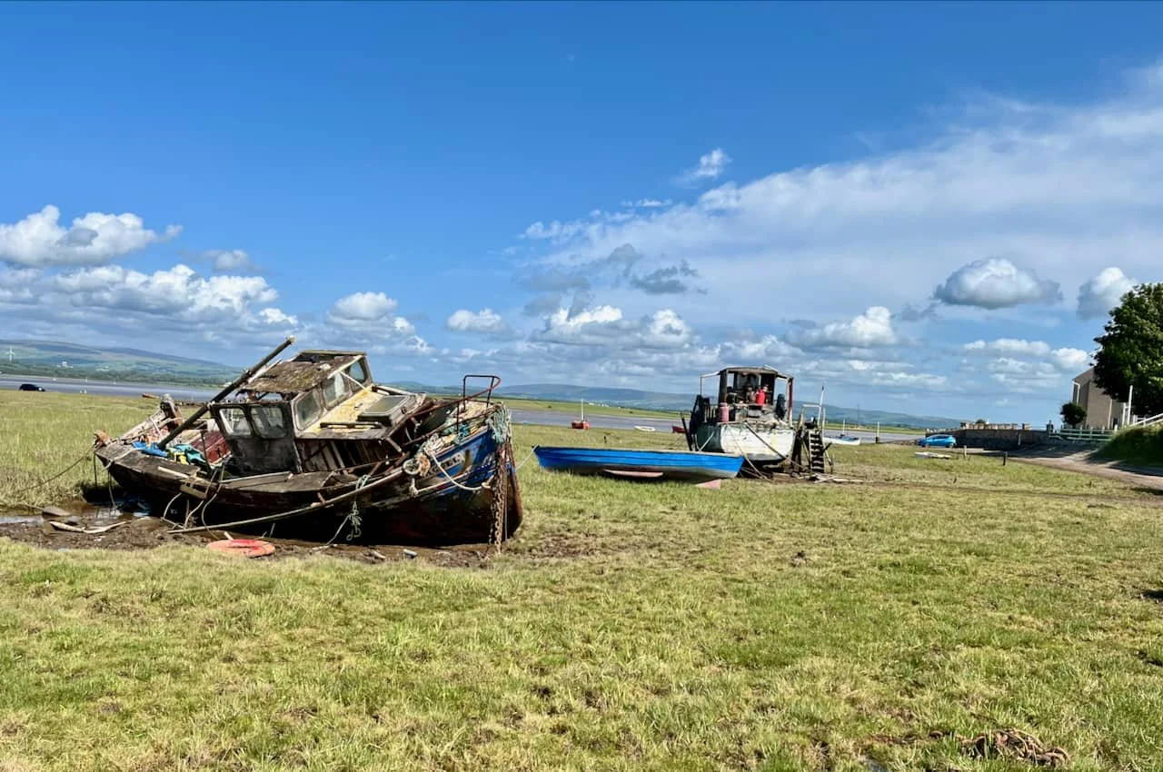 WRECKS ON THE BEACH: Past the old boats and the Anchorage on the right to the shore where cars can be parked when tides permit.