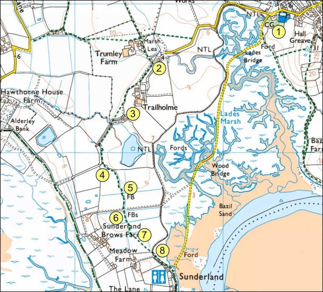 The footpath from Trailholme to Sunderland Point: Courtesy Ordnance Survey