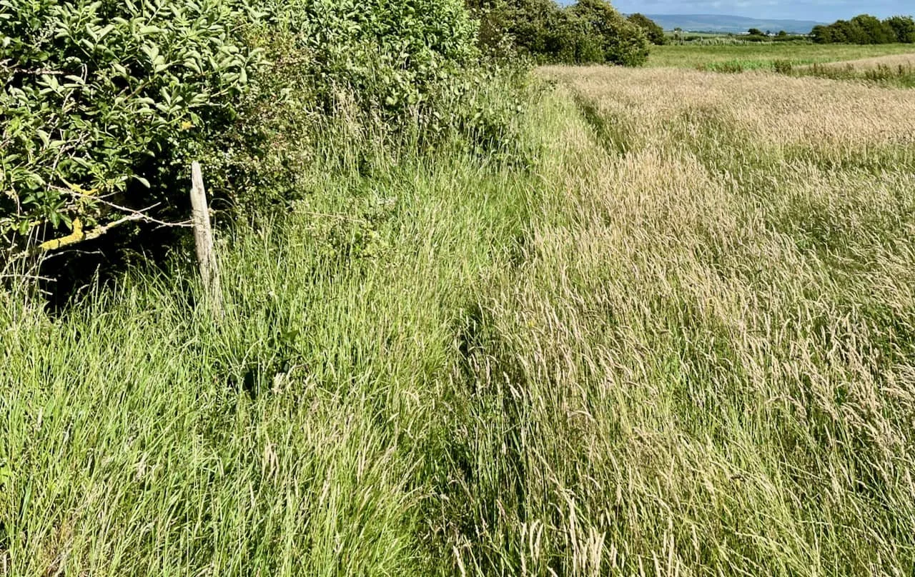 This day is in June, and the field is dry. Notoriously, in winter, the field can become very wet - a deep bog in places.