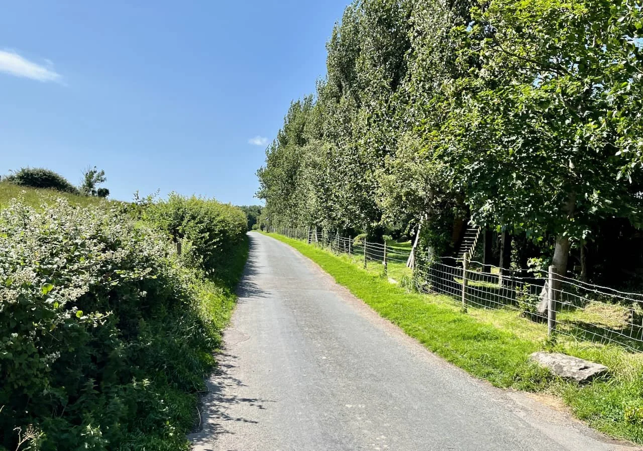 Bosh! We bet there was never any intention for a new road. Keep going until the stile is reached, it can’t be missed.