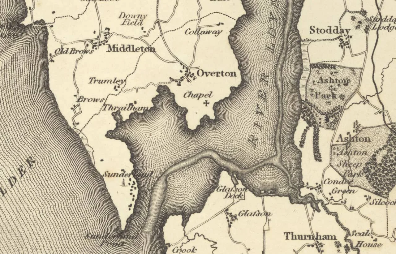 1818 map showing Ashton Park, the opposite side of the river from Sunderland Point: Courtesy National Library of Scotland