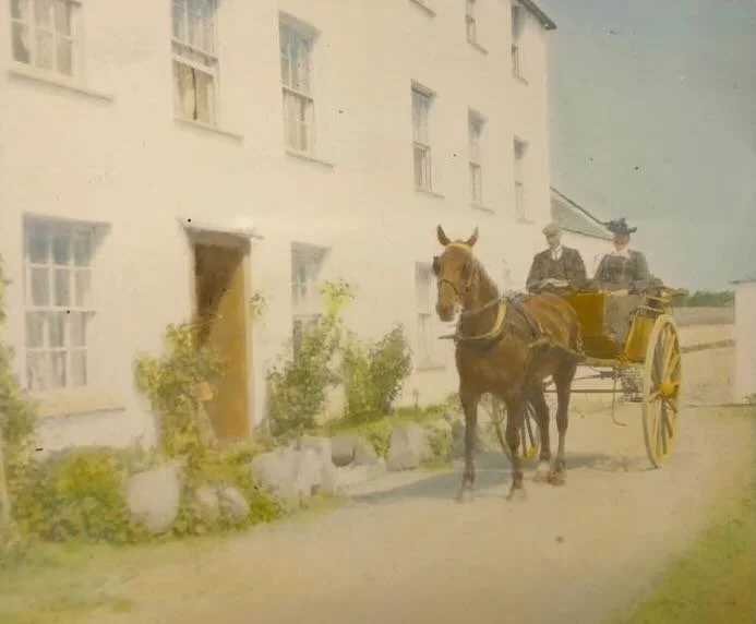 In this remarkable hand-coloured photograph taken by George Gilchrist we see the Bowkers in a horse and trap outside number 14. We know the photo must be before 1908 as the distinctive porch and bay window have not yet been installed.