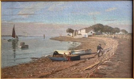 A well-crafted painting of a boat and the Old Hall, dated 1891. Philip would be 26: In a private collection.