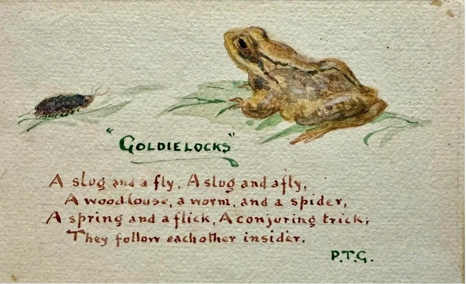 At Christmas and birthdays, Philip sent charming, handcrafted greeting cards, many with rhymes, to his sisters and other close relatives. Here are two examples.