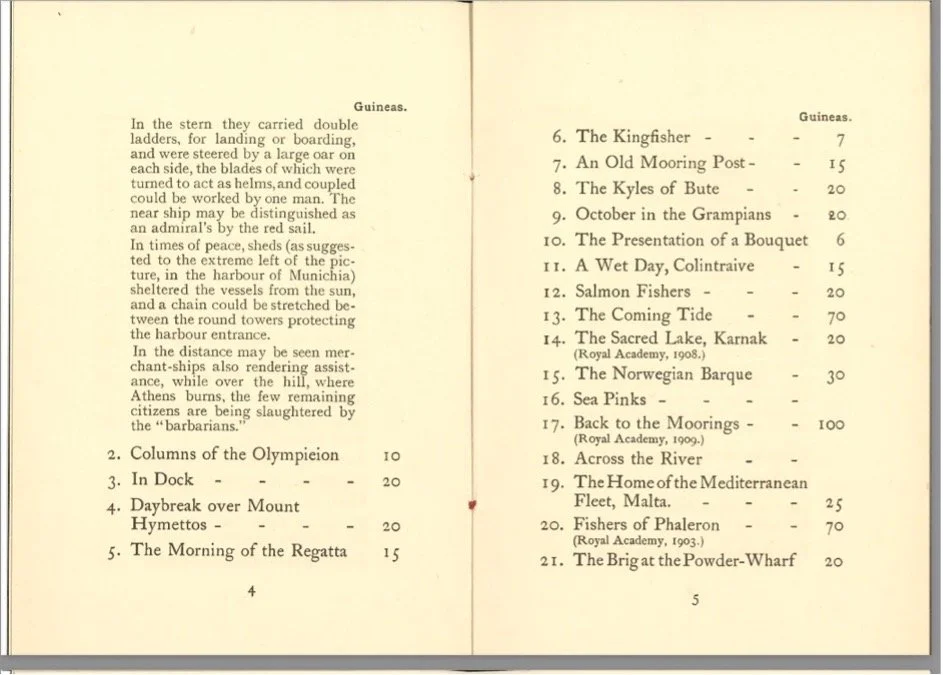 Exhibition at the Athenaeum, Manchester, 1910, pages from the catalogue