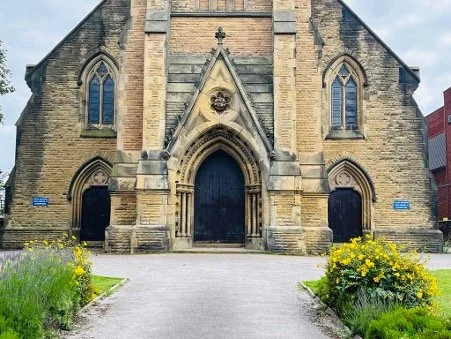 The Entrance to St George’s, Southport, now a United Reformed Church in 2024.