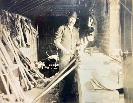 Philip is making crutches in his boathouse.