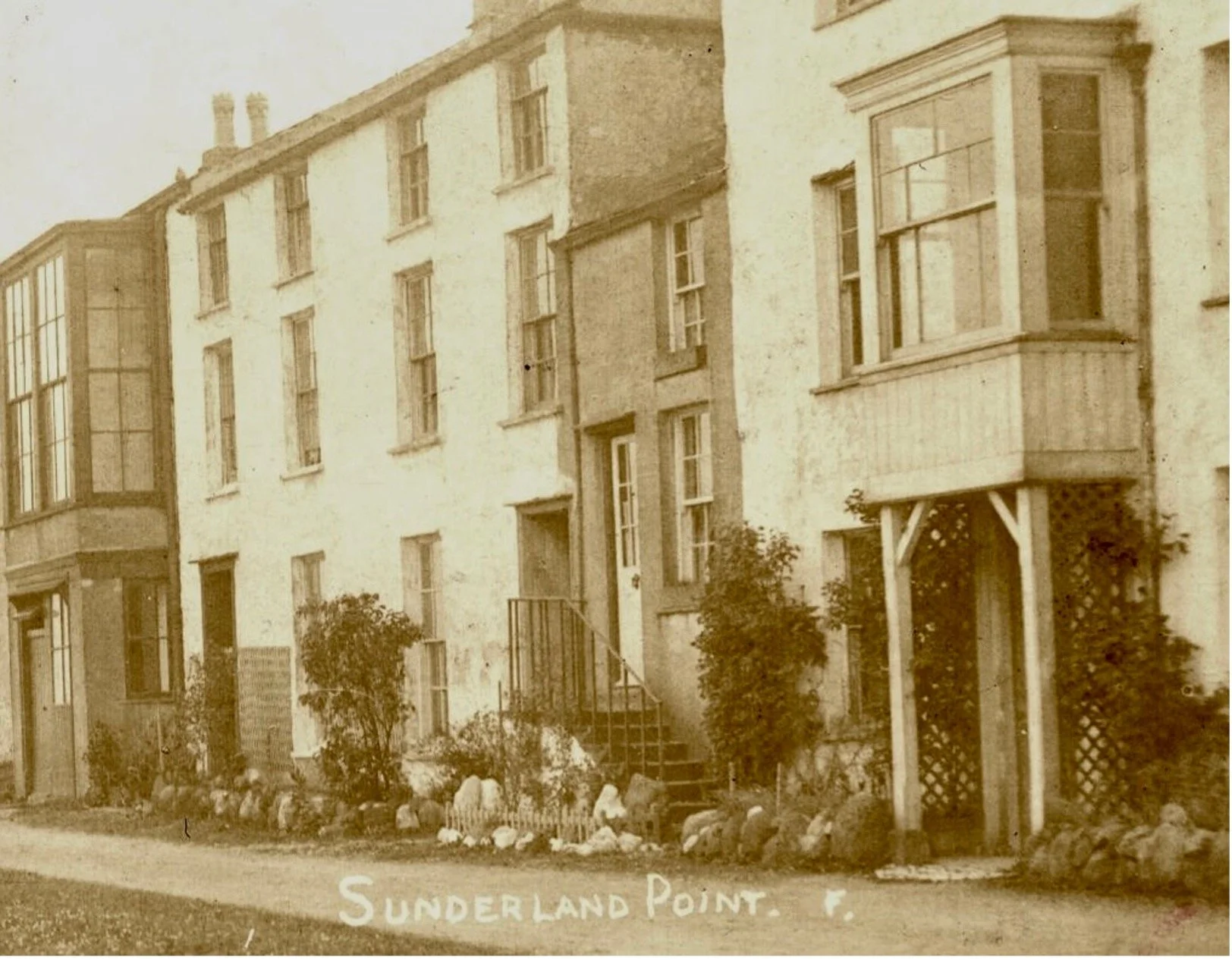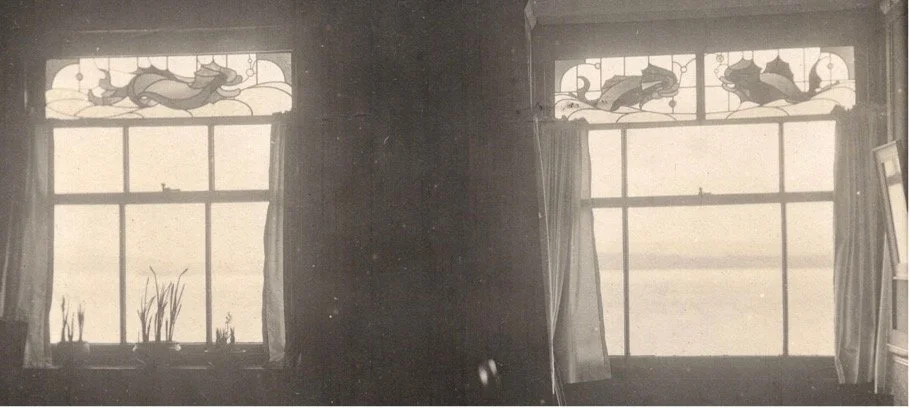 Philip had leased the upper floors of Point Farm (No. 14) and created his first Dolphin House. He added the distinctive porch with an above-bay window, and stained-glass panels featuring dolphins were installed.