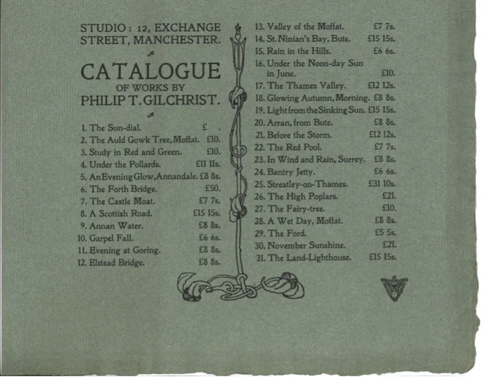 Philip was apprenticed to a Manchester cotton-printing company, where his artistic talent must have been an asset. Perhaps it was, for in 1888, at just 23 years old, Philip entered into a partnership with Frederick Leigh under the name of ‘Leigh and Gilchrist’, on Mosley Street in the heart of ‘Cottonopolis’.