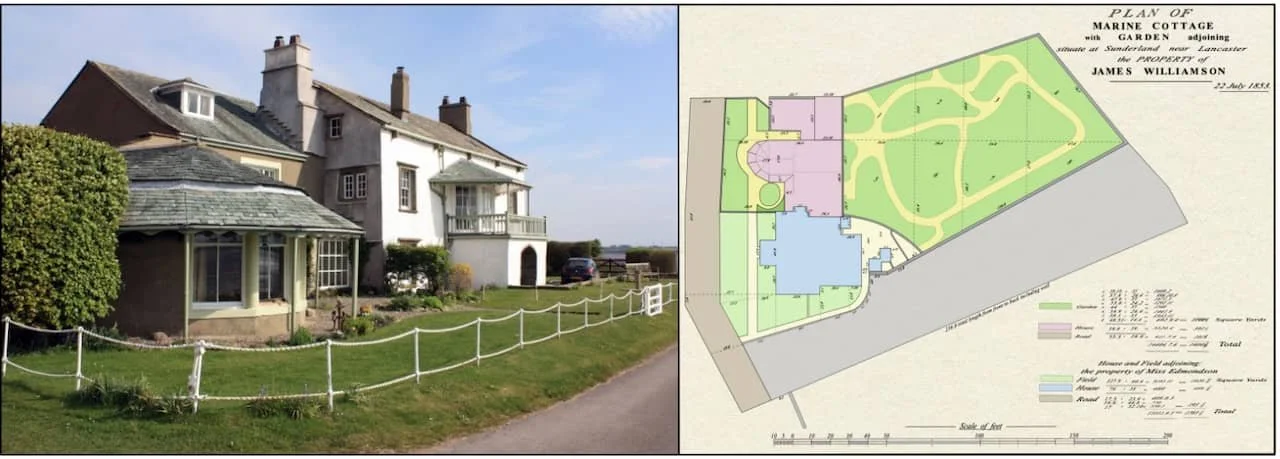(We hope) you will remember our article based around the marine garden James Williamson had planned for himself and his family when he bought Hall End House (number 22) in 1853. To jog the memory, here is the house today and Paul’s restoration of the drawing of the garden.