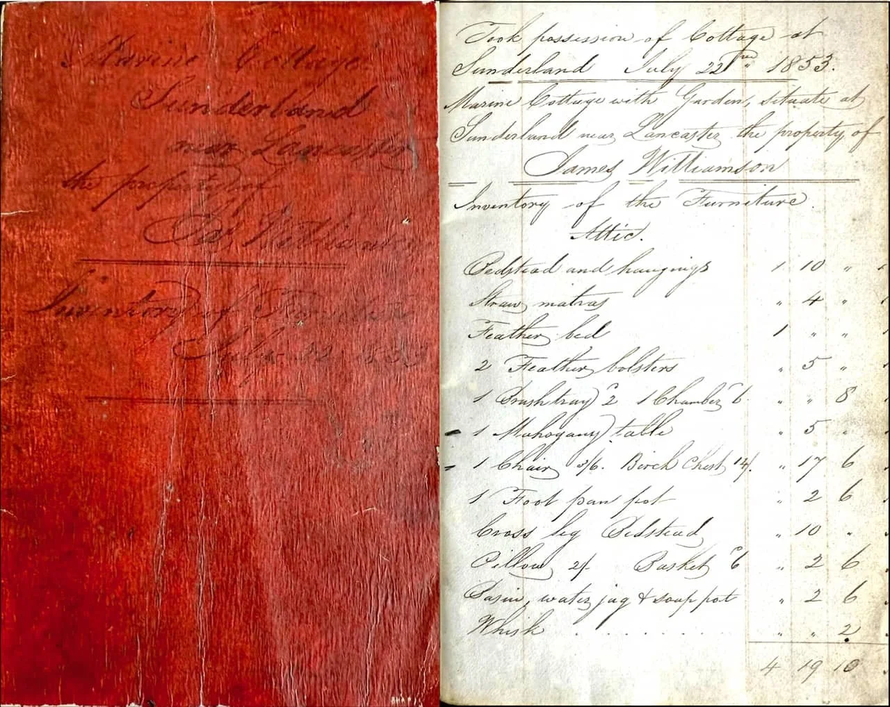 Marine cottage, Sunderland, near Lancaster. The property of Jas. Williamson. Inventory of furniture, July 22, 1853.’