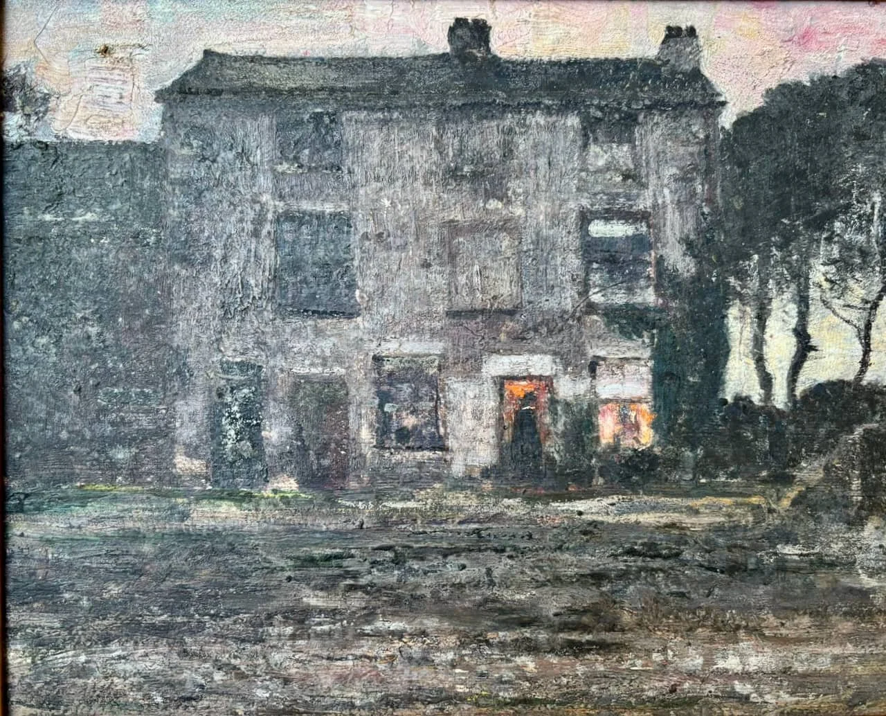 Here is a previously unseen painting, perhaps a sketch in oils, perhaps preparing for a larger work. It’s the two houses, numbers 18 and 19, as the light is falling.
