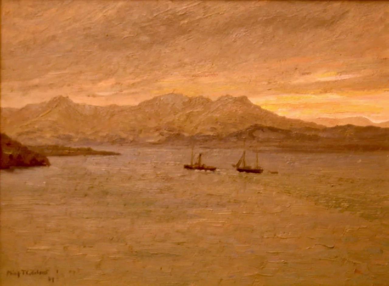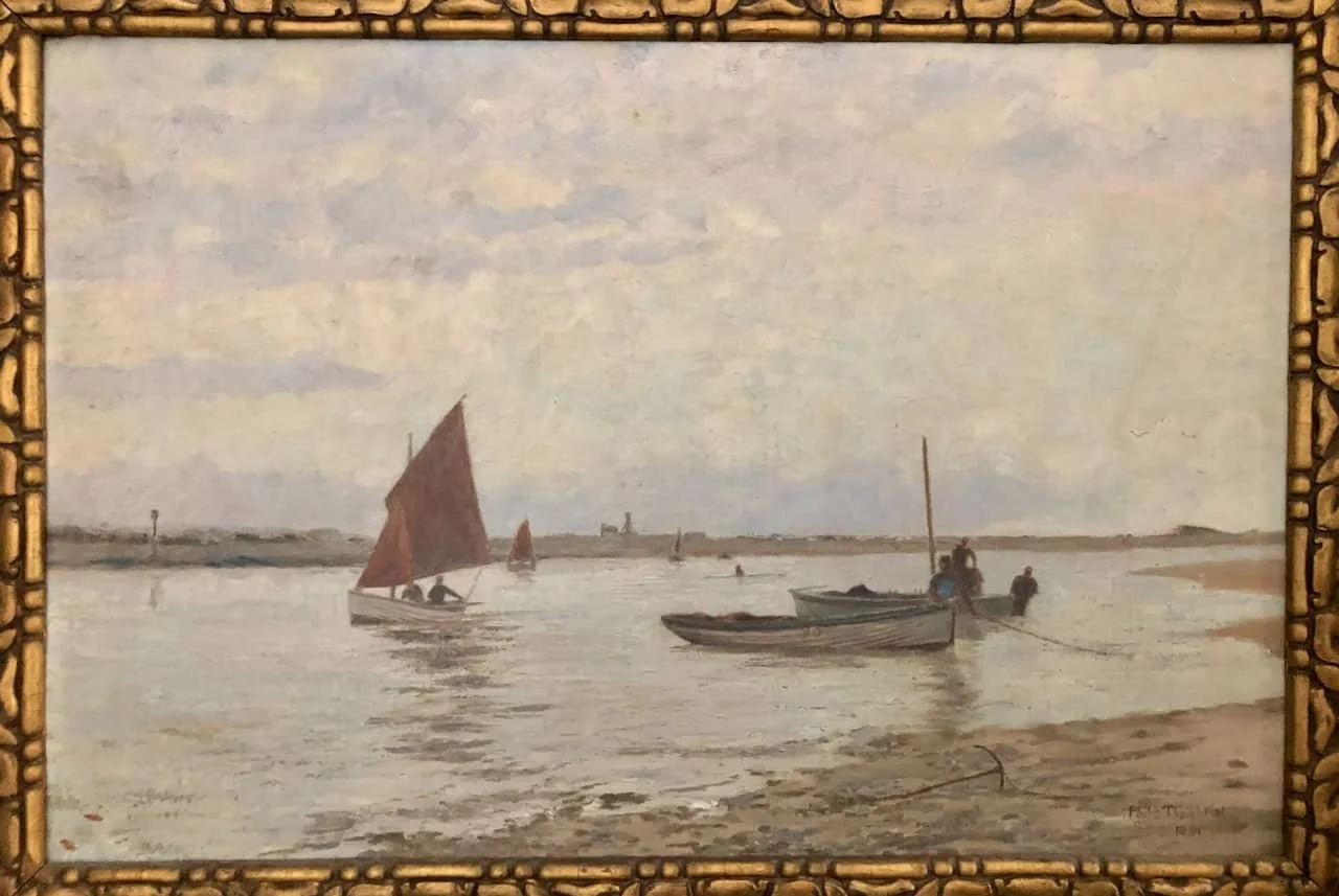 Philip Thomson Gilchrist (1865-1956) lived at Sunderland Point for more than 50 years. He was a fine painter of marine subjects, landscapes and classical themes. He exhibited at the Royal Academy in London and the Royal Scottish Academy, Edinburgh. He was a member of the Royal Glasgow Institute of Fine Arts and both Manchester and Liverpool Academies. Examples of Philip’s works can be found in the collections of many public art galleries.